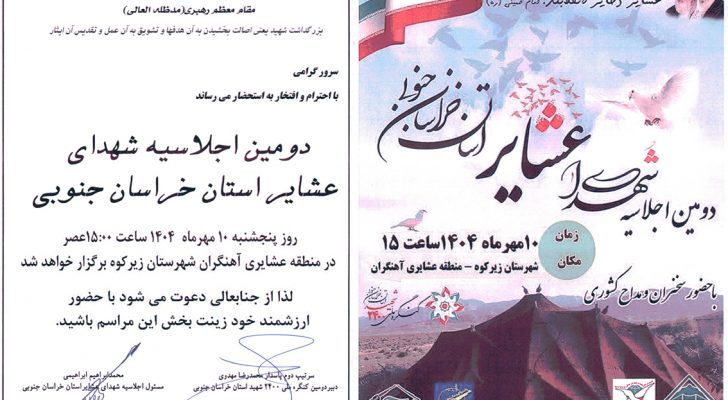 مدیر کل امور عشایر خراسان جنوبی از برگزاری دومین اجلاسیه شهدای عشایر استان خبر داد